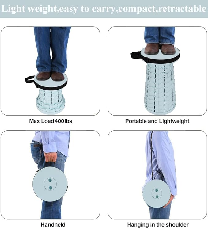 Fishboy Upgraded Collapsible Stool, 400lbs Max Weight, Lightweight But Sturdy, Portable Retractable Folding Telescoping Foldable Camping Stool for Adults Outdoor Fishing Hiking Gardening Travel BBQ