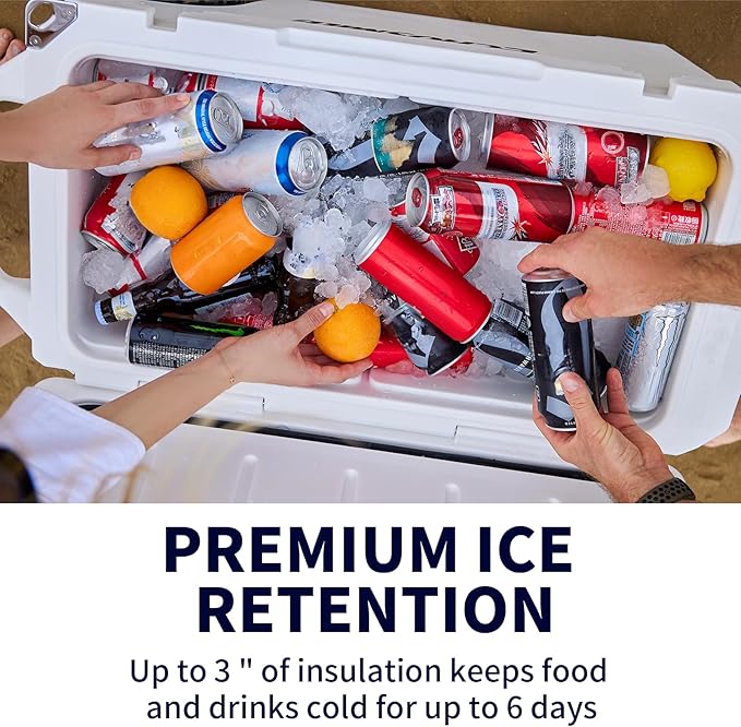 - QUALITY MATERIALS: Crafted with seamless LLDPE using rotomolding technology, our coolers feature UV-resistant exteriors and food-safe interiors. The impact-resistant, one-piece design withstands extreme outdoor abuse while maintaining structural integrity - no cracks, leaks, or warping under 310+ lbs weight capacity.