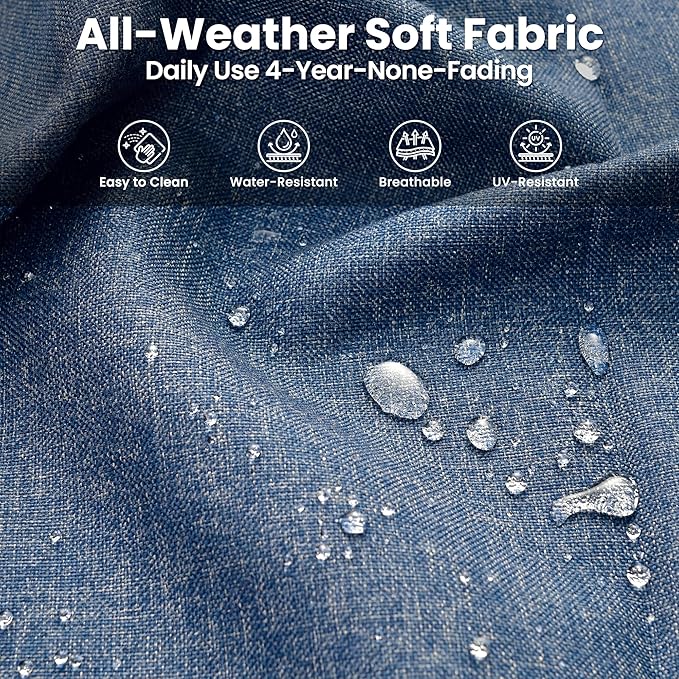 - Thickened Outdoor Cushion: 3.54 inches upgraded high-density and high resilience sponge cushions for comfortable sitting and support. Breathable fabric is water-resistant and and the zipper design is removable and washable