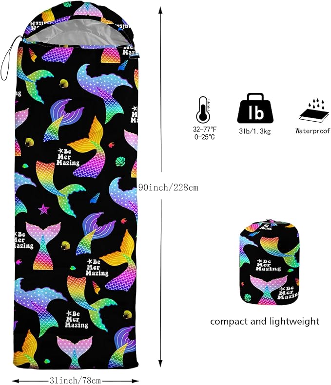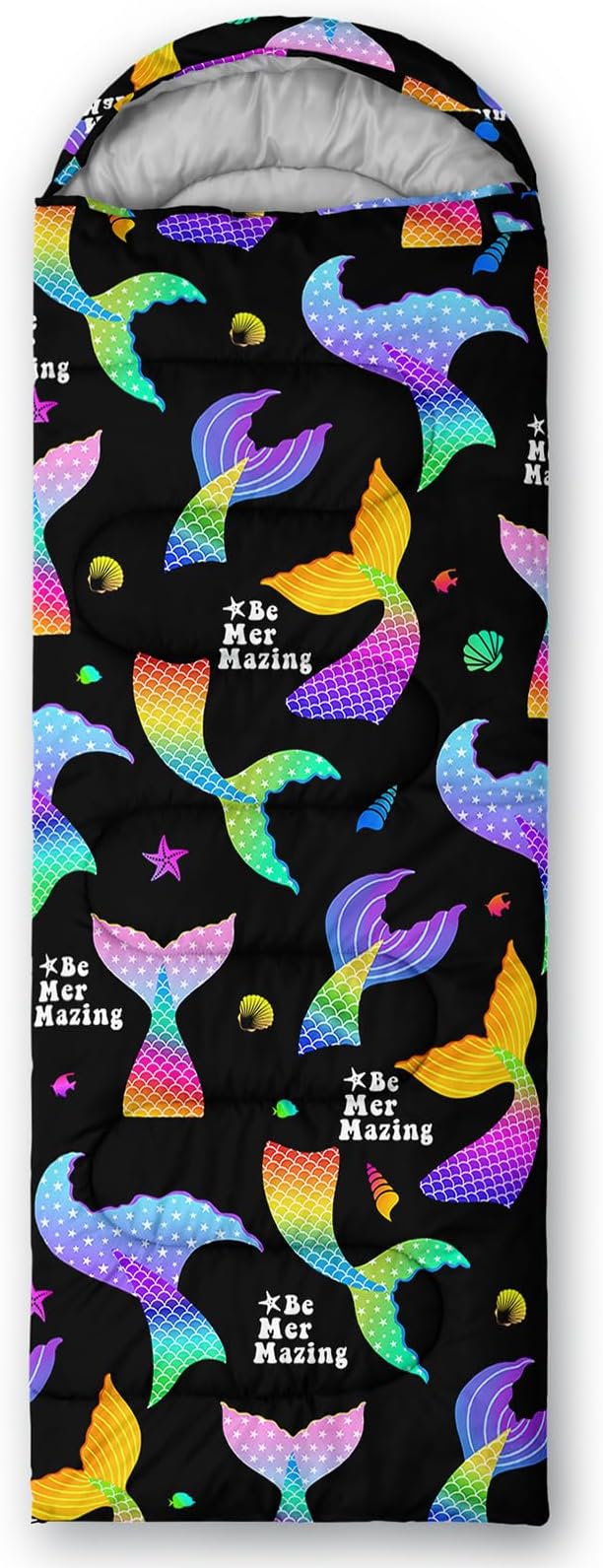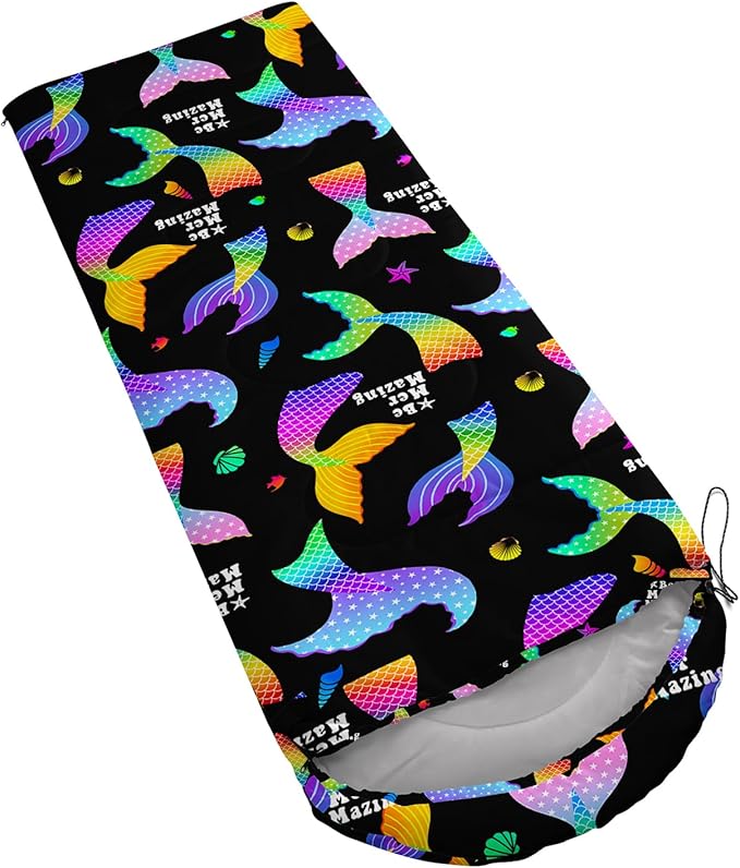 - A THOUGHT OUT DESIGN: Drawstring allows you to tighten hood and keep you warm. The idea of having a zipper at the foot to allow more warm or cool air to enter or exit the bag in different times of the season.Our Mermaid Shell sleeping bags are designed to provide much needed rest after a full day of outdoor activities.