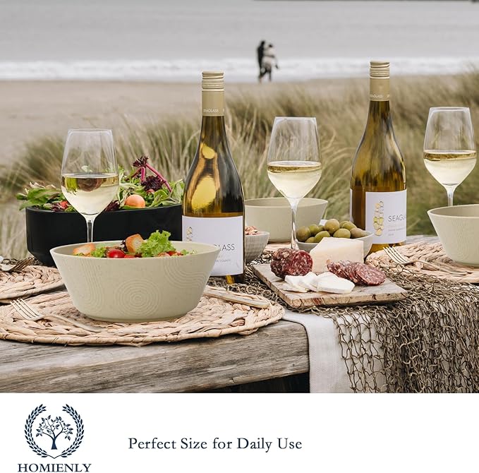 - UNIQUE TEXTURED AND PATENTED DESIGN: The reusable beige bowls are a patented product of HOMIENLY. Each bowl features a unique textured design on the side, adding a touch of fashion and elegance to your tableware. The large soup bowls are designed with a space-saving style and smooth round edges, providing a comfortable grip and preventing deformation. They are a great alternative to traditional plastic cereal bowls.