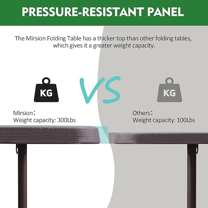 - EASY TO STORE AND CARRY: The MIRSION Folding Table is the perfect solution for outdoor parties and events. The large folding table comes with convenient side-locking handles, allowing you to easily carry and transport it anywhere.