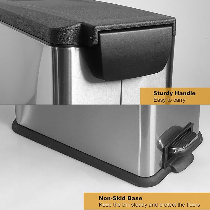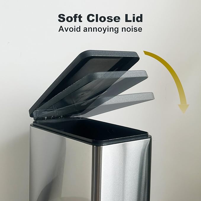 - [Silent Close Lid] Our slim kitchen bin use a soft close component,the garbage bin does not close suddenly, but slowly and quietly.