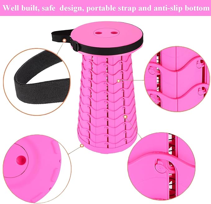 - [Foldable, Adjustable height ]: The folding camping stool to open and close easily in just seconds, lock in place with slight rotation, easy installation. The height can be adjusted freely between approximately 2.56 inch and 17.7 inch, It is applicable for all adults, it is also perfect for sending as a gift for family, friends, relatives