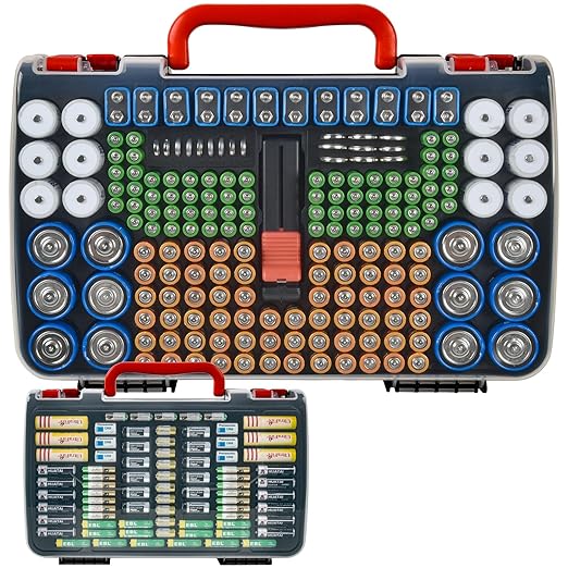 - Garage Organization for aaa aa batteries: Battery organizer for drawer with sturdy and comfortable handle, you can easily carry it and go out. Battery carrier with compact size and humanized bottom design allow you to put cr2032 battery protector into the drawer, tool room, workbench, garage cabinets or stand it on the table, shelf or storage rack easily and directly