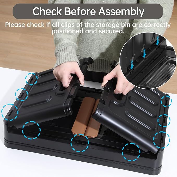 - Foldable Storage Bin: HAIXIN collapsible and install-free storage bin, enables to fold flat, only takes 10 seconds to snap pieces together, no instructions or tools needed, easy-assemble foladable bin. When not needed, the storage box can be easily folded and stored under the bed or couch or in any corner, taking up little space.