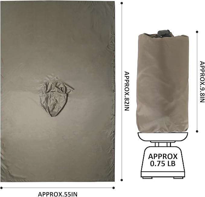 - [ROOMY & EASY TO CARRY] GRVCN military poncho opens up to 55 x 82 inches, providing roomy enough coverage to carry a backpack or uses as a ground tarp or floor mat. It weighs 11 oz and comes with a 9x5 inch pouch. The poncho is small volume after storage, does not occupy space, suitable for your lightweight backpacking cross country.