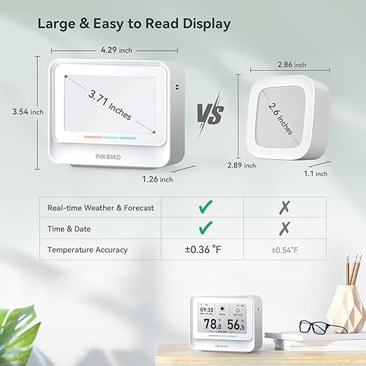 - 【WiFi Remote Monitoring】: Connect this remote temperature monitor to a 2.4GHz WiFi, you can view temp and humidity anytime anywhere on the INKBIRD app. Free data storage and export for up to 2 years.