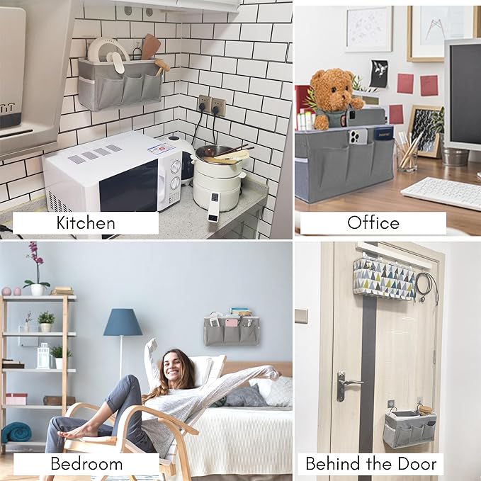 - 【Wide To Use】The hanging organizer works great on any chair, bedside, door, or wall that you can hang under the desk, over the cabinet door, or beside the closet shelf. It is suitable for Bedroom, Bathroom, Office, RV Camper, and more. All rooms will become more tidy and comfortable with it.