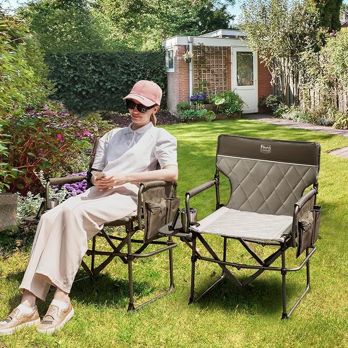- HEAVY-DUTY COMFORT: Built with a sturdy metal frame, our directors chair supports up to 400 lbs, offering stability and durability; the 21-inch seat width provides ideal comfort, while padded hard armrests make sitting and standing easy.