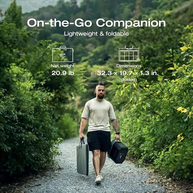 - Light and Durable. The 220W Solar Panel is foldable and comes with an adjustable carry case. Weighing in at 20.9Ib only , it can be easily packed up and carried with you, no matter where you go. Made from layers of flexible EVA and tough fibreglass, it also comes with a IP68 Waterproof rating, meaning it is dust and water tight.