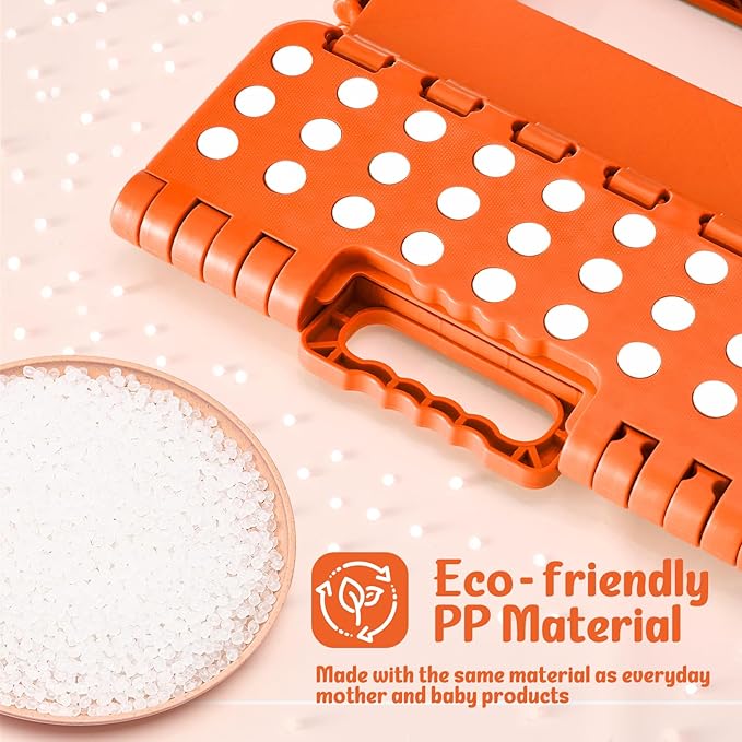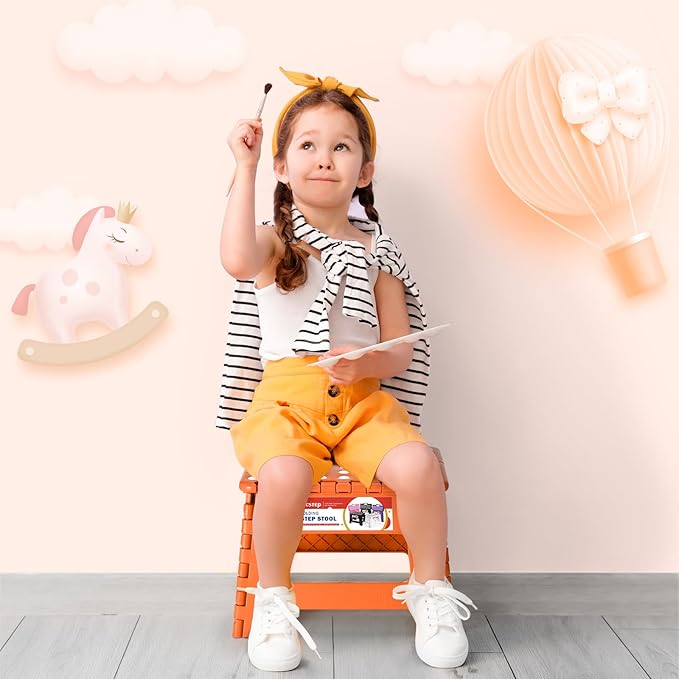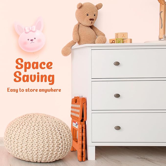 ACSTEP 9 Inch Folding Step Stool 300 LB Capacity Plastic Foldable Step Stools for Kids and Adults, Folding Stool Suitable for Kitchen, Stepping Stool with Handle Orange Small Step Stool 1PC