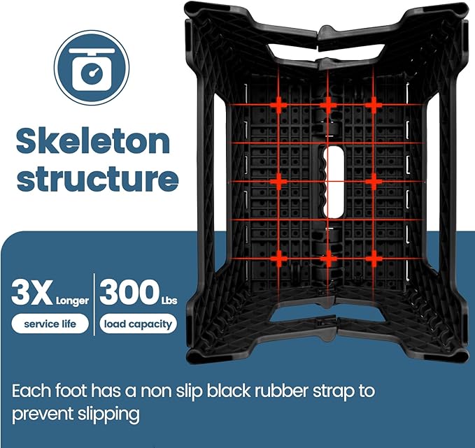 - Safety first: Prolonged sun exposure can weaken plastic stools, reducing load capacity. For safety, inspect your folding stool for normal functionality before use if it has been in the sun for an extended time