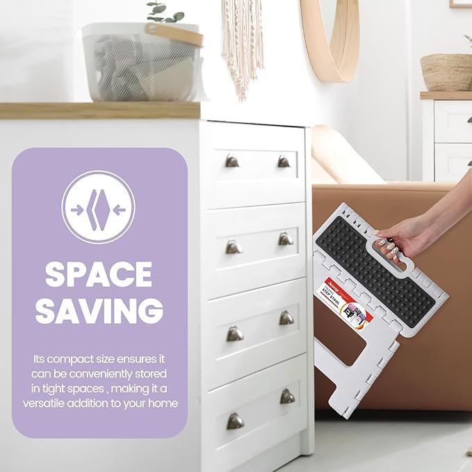 - Safety for Kids & Adults: Our step stool ensures safety with its non-slip surface, rubber dots, and straps. Ideal for kids to reach sinks and adults to access high shelves