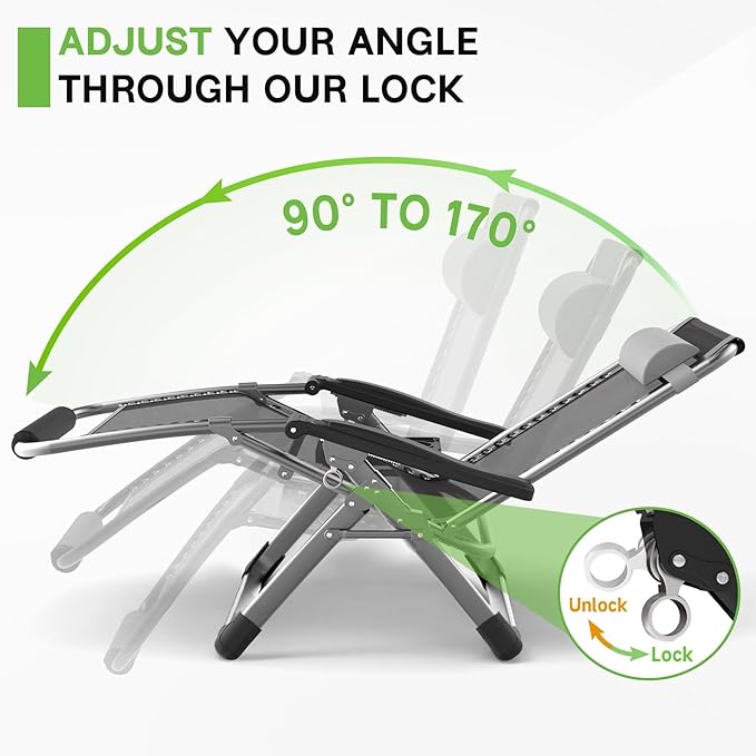- 🏕️Upgraded Aluminum Lock: Our comfy gravity chair featuring the latest third-gen aluminum alloy lock mechanism, upgraded version boasts more durable materials. An 8mm deep groove for enhanced stability and a firmer lock, ensuring a secure and comfortable experience.