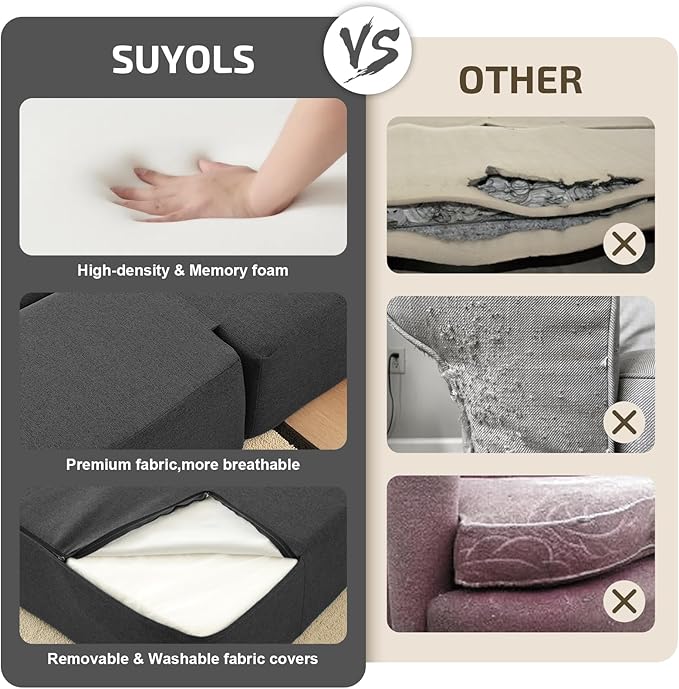 - 【Mulitpurpose & Space Saver】SUYOLS folding sofa bed perfectly fits different kinds of scenarios such as living room, guest room, apartment, upstairs loft, bedroom, office, playrooms, dorms, etc. It can be easily converted into a storage space, which is very space-saving.