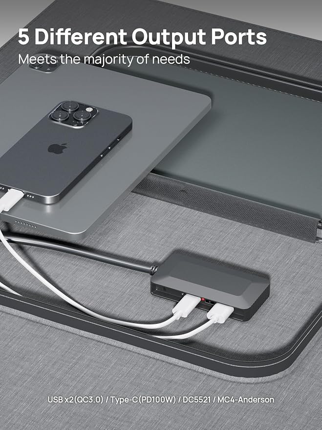 - 【AFERIY 2400W Portable Power Station】The XT90 DC input port has a voltage range from 12V to 50V, and its maximum DC input power is 500W. It is compatible with all foldable solar panels on the market.