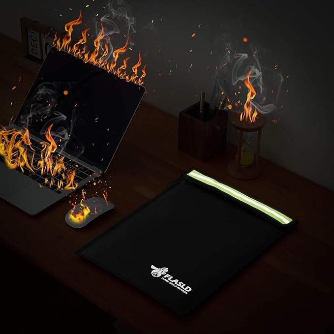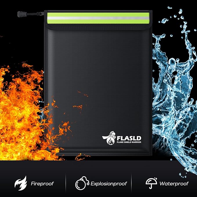 - FIREPROOF - FLASLD fireproof document bags are made of 4 layers high quality fire retardant materials silicone coated fiberglass fireproof safe bag which stands up against the fire and heat up to 1800℉.