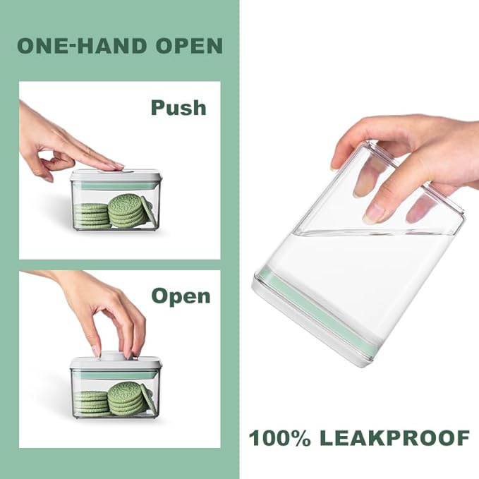 Ankou Pop Airtight Food Storage Containers with Lids- 3 Pcs Stackable One Button Opening Food Containers, Kitchen Pantry Storage Containers for Snacks Candy Salt Herbs Spices BPA-Free (1.2 QT * 3)
