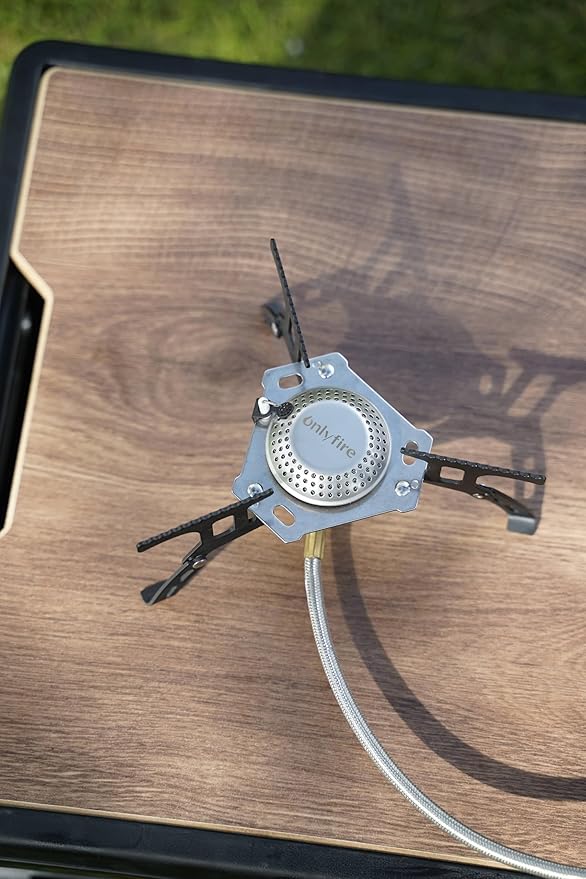 - STURDY AND STABLE COOKING PLATFORM: Constructed with thick-gauge stainless steel and copper triangle brackets, this propane backpacking stove ensures a stable and secure pot support. Serrated pot-support arms prevent unwanted pot shifts, maintaining a steady cooking experience.