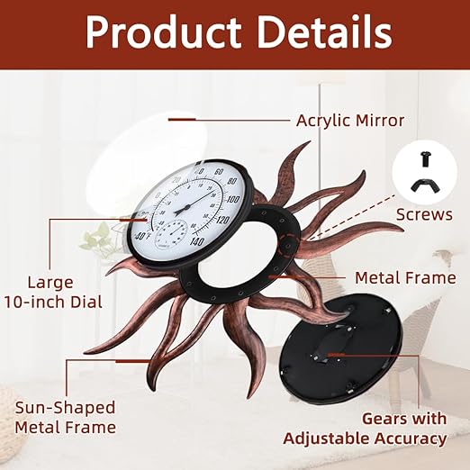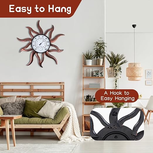 - Widely Used: The 26-inch decorative outdoor thermometer can fill an empty room well and make the room change to vintage elegance. The temperature and humidity integration function can automatically monitor weather conditions, and bring a comfortable experience to life. Christmas Day, Mother's Day, birthdays, and other festivals give it as a gift to the elders, it will be a surprising gift.