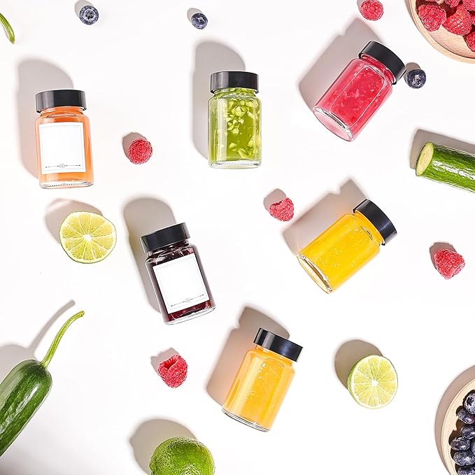 - Package List: 16*2 oz shot glasses bottle, 16*black leakproof lids, 32*blank labels. set to meet any of your usage needs, choose a reusable juice bottle, and say goodbye to plastic once and for all.