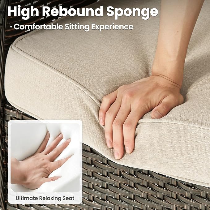 - Thickened Outdoor Cushion: 3.54 inches upgraded high-density and high resilience sponge cushions for comfortable sitting and support. Breathable fabric is water-resistant and and the zipper design is removable and washable