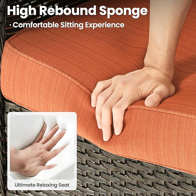 - Thickened Outdoor Cushion: 3.54 inches upgraded high-density and high resilience sponge cushions for comfortable sitting and support. Breathable fabric is water-resistant and and the zipper design is removable and washable