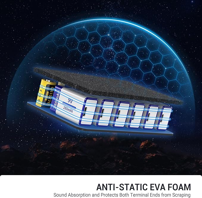 - [IP67 Waterproof & Shockproof] KIWIFOTOS Battery Organizer Case is made of heavy-duty Eco-friendly PP plastic material, which is a high load-bearing capacity. The waterproof and dustproof level reaches IP67, providing effective protection for the internal batteries. The cover and bottom are designed with EVA sponge pads, which can effectively avoid the noise generated by vibration and prevent explosions.