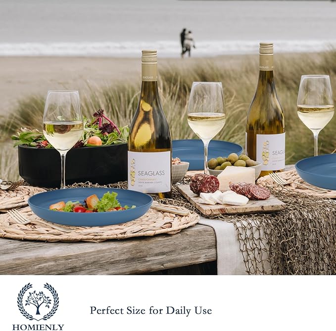 Homienly Dinner Plates Set - Alternative to Plastic, Wheat Straw - Set of 8, Lightweight, Microwave & Dishwasher Safe, Unbreakable Salad Plates (Blue, 10 inch)