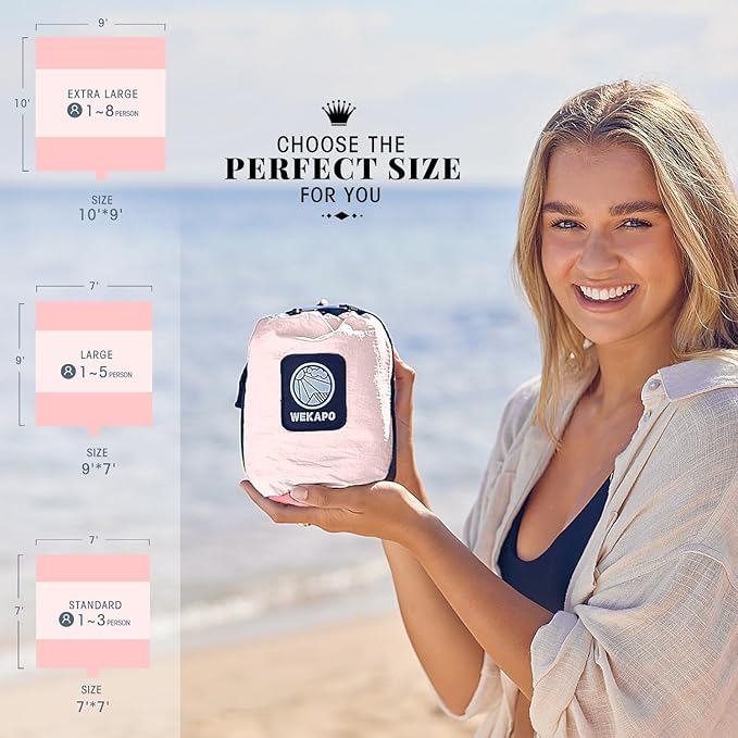 - ✔ SIMPLE DESIGN & DOUBLE ANCHORED-WEKAPO blanket is designed as simple as possible so it has eliminated 5 sticking out sand pockets and added 4 corner pockets that can be used for storage or sand anchor. If it's windy day, it can be nailed down on beach by metal stakes coming with our blanket.
