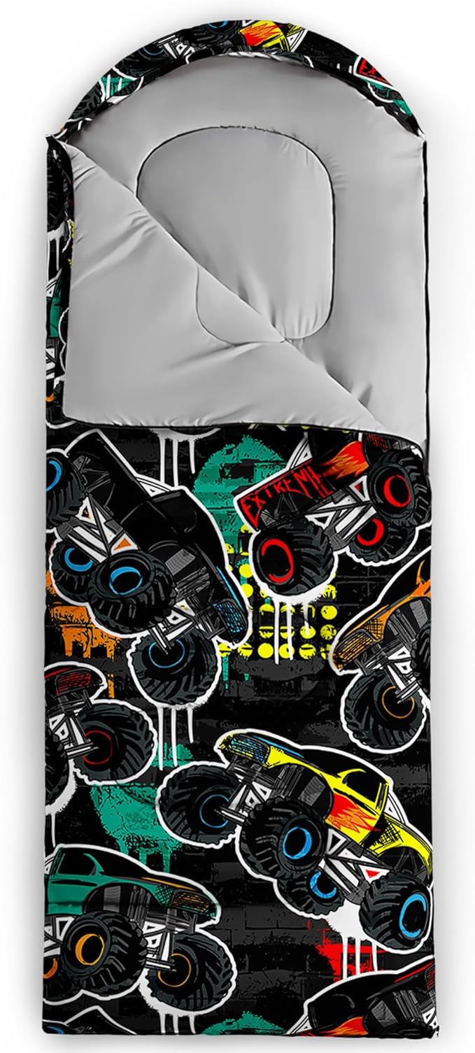 - 【Fits For 3 Seasons】: Size - 31 by 90 inches (W x D). Our Graffiti Style sleeping bag can be used in 3 seasons with a design temperature of 32℉-77℉(0℃-25℃). These Colourful Truck bags also have a weather resistant waterproof design to keep you warm and prevent you from any dampness.