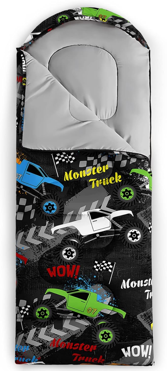 - 【Fits For 3 Seasons】: Size - 31 by 90 inches (W x D). Our Race truck sleeping bag can be used in 3 seasons with a design temperature of 32℉-77℉(0℃-25℃). These Cartoon Car bags also have a weather resistant waterproof design to keep you warm and prevent you from any dampness.
