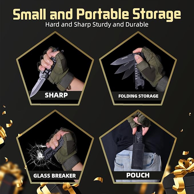 - Ideal who love outdoor: EDC knife multitool dad birthday gift for men , hunting, riding, hiking, camping, exploring, fishing, backpacking or adventure. The folding knife comes be a stocking stuffer gift for Christmas, Valentine's Day, Father's Day Gifts