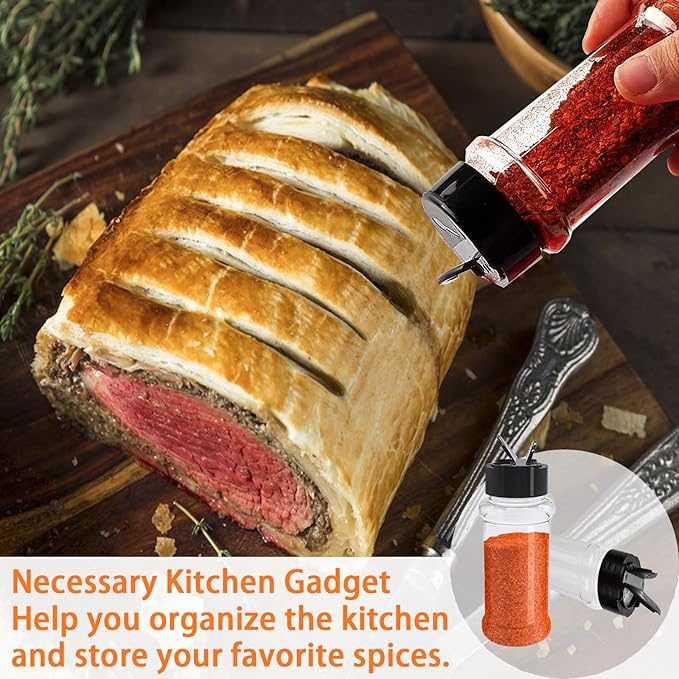 - High Clarity & Visibility: Our 3.4oz plastic spice bottles feature a clear body, allowing you to clearly see the spices inside. It comes with labels to help you better distinguish and never make the wrong decision during the cooking process