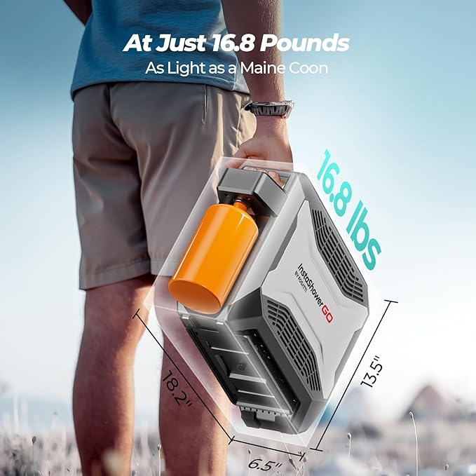 - 【Portable Shower System】FOGATTI InstaShower GO is a compact and portable shower system designed for outdoor use. Heated by propane, it provides hot water in seconds for showering, washing dishes, cleaning hands, and other tasks. It is lightweight and easy to store, making it an ideal companion for camping, hiking, and other outdoor adventures.