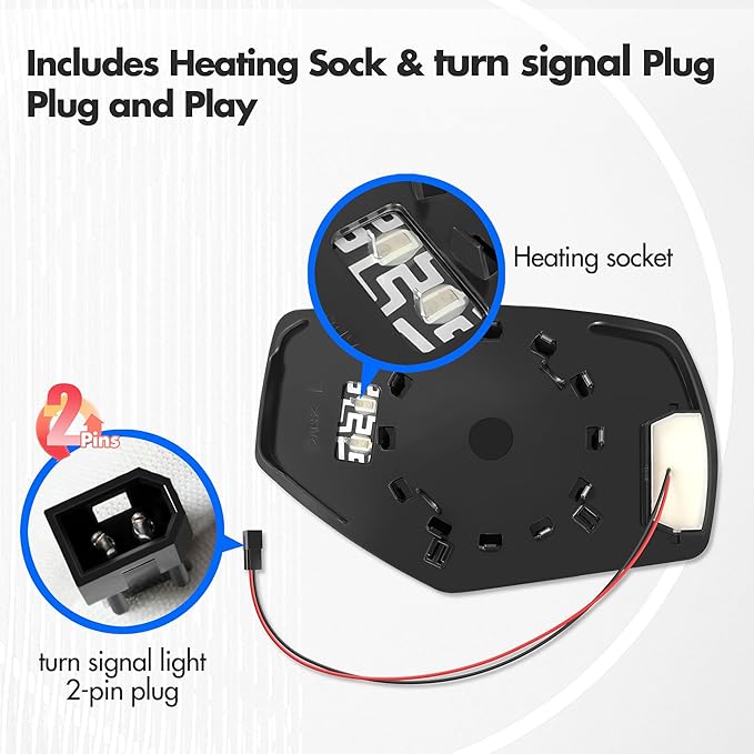 - 【Plug and play】Driver mirror equipped with heating socket, turn signal, turn signal light extension cord plug, it's a plug-and-play solution for easy installation. The provided tools and installation video will quickly assist you in replacing your rearview mirror