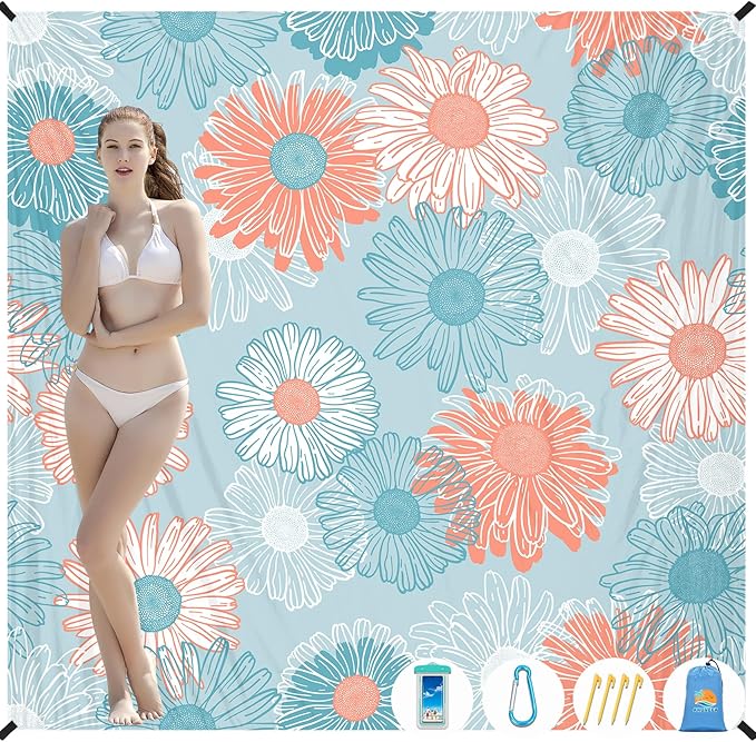 - 🌊BIG BEACH BLANKET:Durable and fast drying,can also be used as a canopy,sunshade,tent,toddler crawling mat,picnic mat,first aid mat,better professional fabric sewing without irritating the skin,providing you a good sense of use.