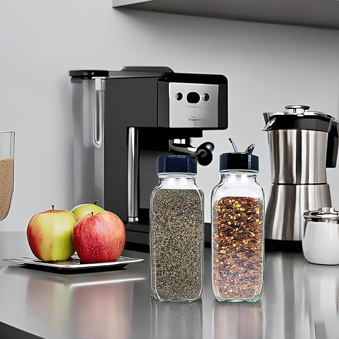 - VERSATILE HOME ESSENTIALS: Our Glass Spice Jars with Shaker Lids are modern, minimalist home must-haves you can use for home canning various Kitchen essentials like food, condiment, spices, herb, coffee, powder, and salt. These bottles also store small things like buttons, pins, marbles, beads, sand, and more.