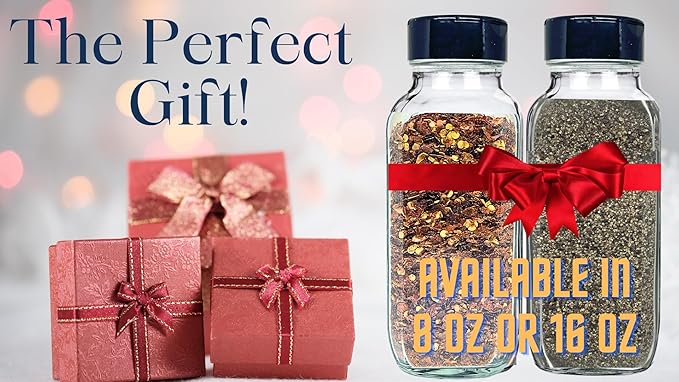 - HEAVY-DUTY STORAGE CONTAINERS: These spice bottles are USA-made using reusable BPA-free materials. Each features an airtight clear glass that can be readily personalized with any decorative label, choices include Black or Red plastic shaker cover with enlarged holes on one side and a sifter on the other for a larger, more measured portion .