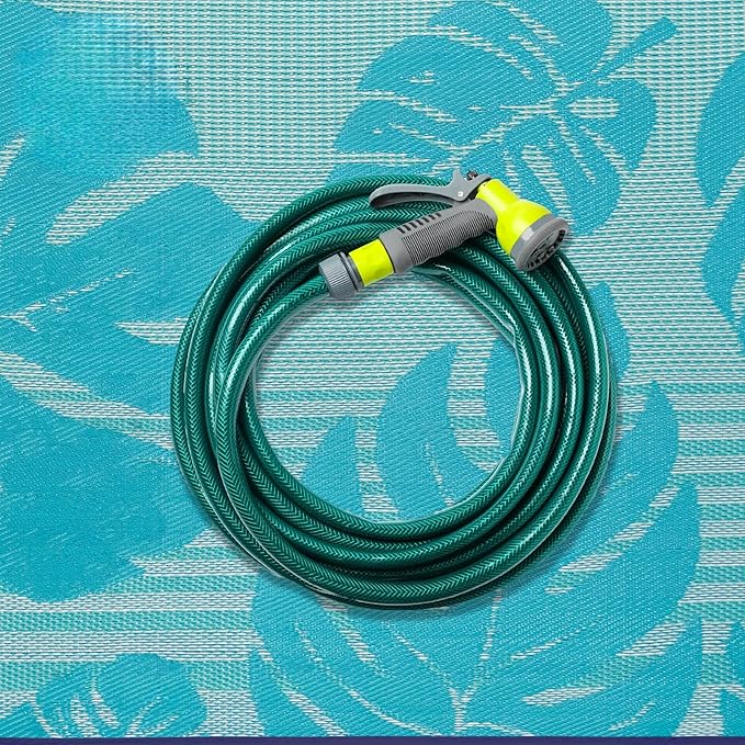 - Waterproof rug - These durable outdoor rugs do not absorb moisture, stain resistant, and easy to clean with a hose. They are UV resistant for long lasting colors