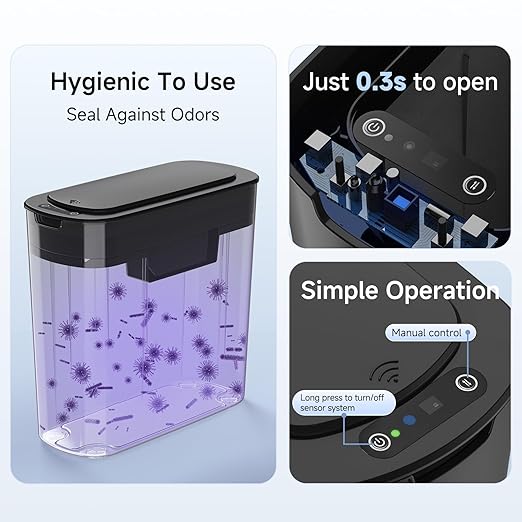 - 【Touchless Trash Can】Adopts advanced infrared technology. The lid opens when your hand or any object is detected in the sensing area, eliminating the need for direct contact, particularly beneficial for individuals with mobility challenges. Requires 2 AA batteries (not included)