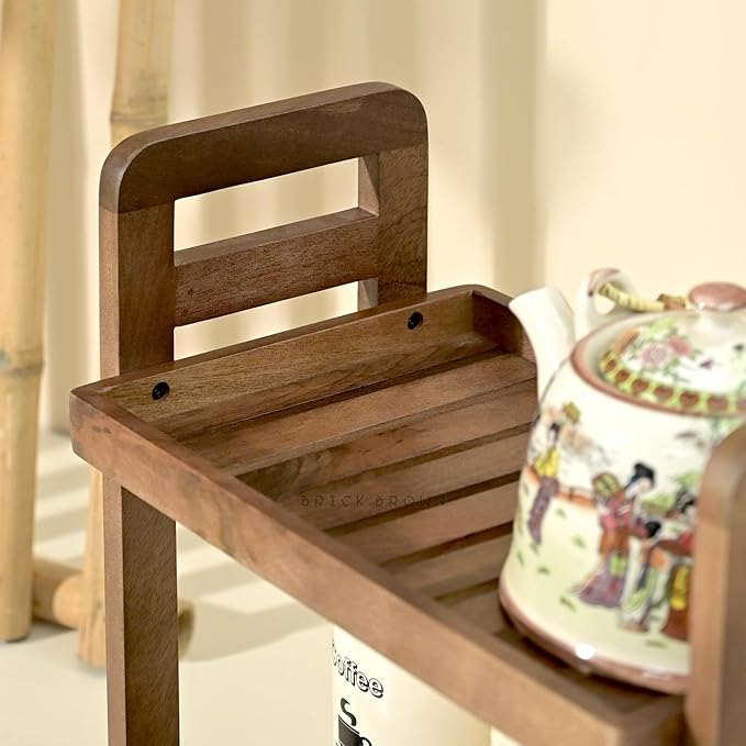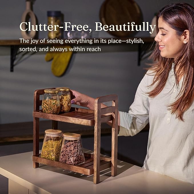Premium Cocoa Kitchen Wooden Organizer 2-Tiered Serving Stand| Display Snacks, Fruits & Desserts | Kitchen & Dining Organizer in Mahogany Finish (Self Assembly)