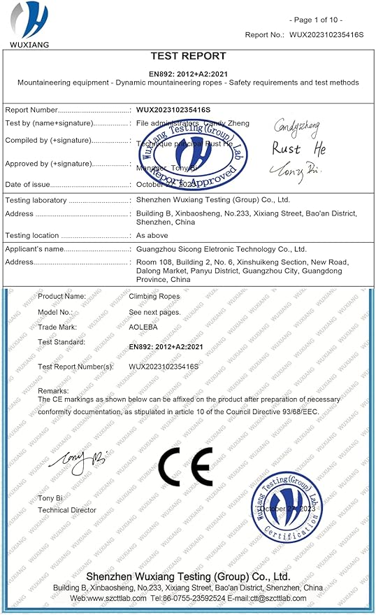 - CE Certified: Our static climbing rope meets the CE Certification of EN 892: 2012+A2:2021 Standards (Certificate No.: WUX202310235416SC), ensuring quality control. Bright color ensure great visibility in all weather.