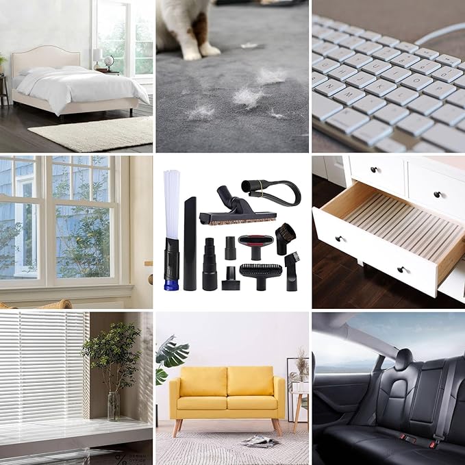 - EFFORTLESS ACCESS TO HARD-TO-REACH AREAS: These vacuum cleaner attachments effortlessly reach into tight corners and spaces, such as under the fridge, within vents, and car interiors, making cleaning a breeze. Our universal vacuum attachments handles both wet and dry cleanups, easy to use,no tools needed