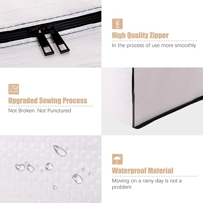 - Enhanced Quality: Designed for reusability and durability, these bags are water-resistant and more robust than cardboard boxes, plastic bins, and other containers, ensuring your items stay safe and secure while in transit.