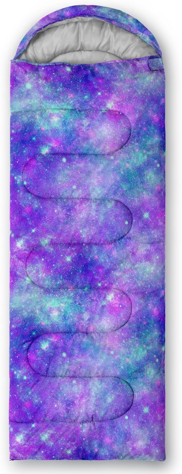 - 【Fits For 3 Seasons】: Size - 31 by 90 inches (W x D). Our Purple Tie-Dye sleeping bag can be used in 3 seasons with a design temperature of 32℉-77℉(0℃-25℃). These Blue Shining Star bags also have a weather resistant waterproof design to keep you warm and prevent you from any dampness.