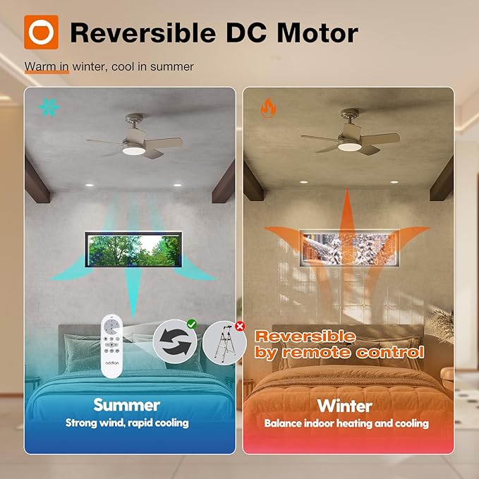 - Ceiling Fan with Light: Bring more than just wind and light, but comfort! addlon modern ceiling fan, with double-sided fan blade design, it can be the perfect decoration in your home while delivering enough airflow and light. Our 32 inch small ceiling fan with light remote control has A energy efficiency rating, which can avoid 80% of electricity loss compared with traditional fans.