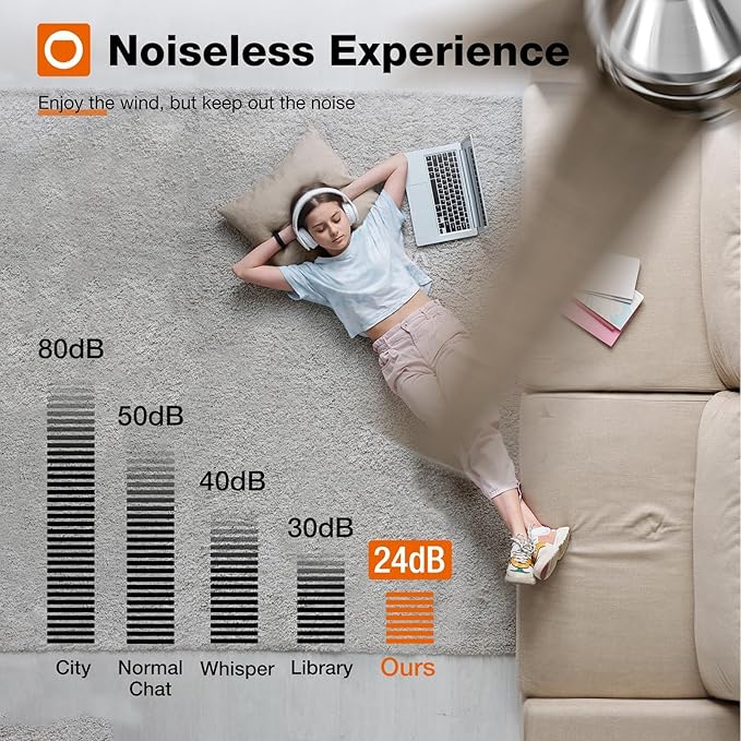 - Super Quiet Experience: Enjoy the wind, but keep the noise out! This ceiling fan is designed for light sleepers, brings you comfortable sleeping with a quiet living environment. The volume is low to 35dB when the fan is running, like the sound of falling leaves, or like a butterfly flaps its wings(30dB). It is more suitable for families with babies or elders.