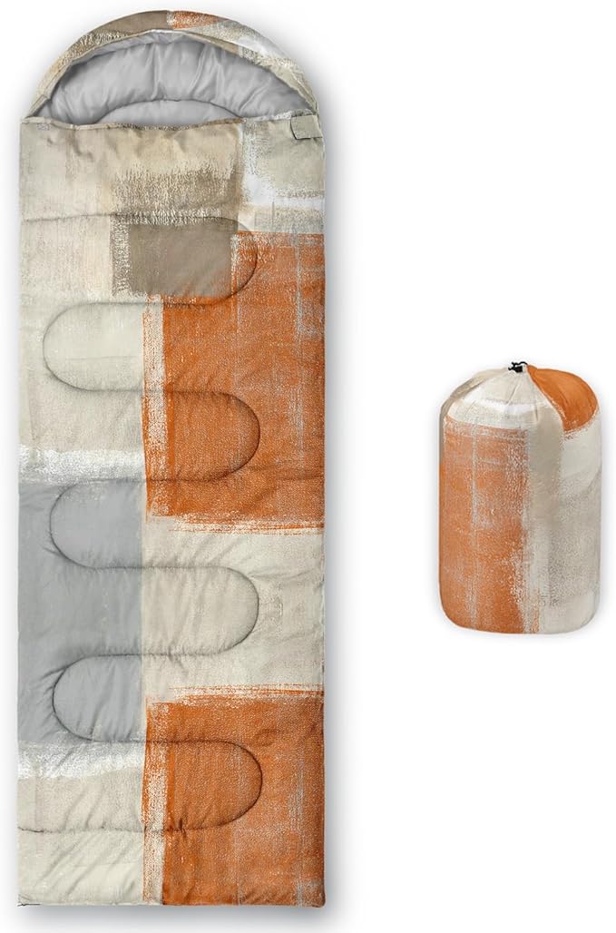 - Premium Material - The camping sleeping bag is made of premium 220T ripstop microfiber fabric,comfortable and breathable,lined with 220T cotton pongee. The waterproof outer protective shell is made of a unique hexagonal design and high-quality Material with double S-stitching and microfiber filling for optimal warmth and insulation to protect you from the elements. The bright colors are loved by boys and girls,great for kids and adults alike!